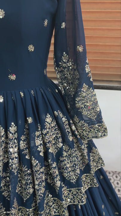 This blue lehenga with top and dupatta is crafted for women who appreciate calm elegance blended with rich traditional detailing. The serene blue tone offers a refined and versatile appeal, while the heavy 5mm embroidery sequin work adds festive richness and intricate texture to the ensemble.