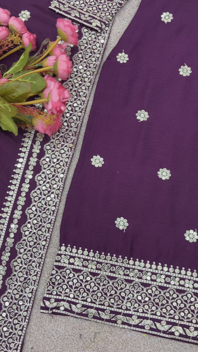 Add a touch of royal elegance to your ethnic wardrobe with this trendy designer readymade suit in a rich wine shade. Crafted from pure heavy chinnon silk, this outfit offers a smooth texture and graceful fall, making it perfect for festive occasions, parties, and evening celebrations. The matching pure heavy chinnon silk dupatta enhances the coordinated designer look, while the heavy micro-cotton inner lining ensures comfortable wear throughout the day.